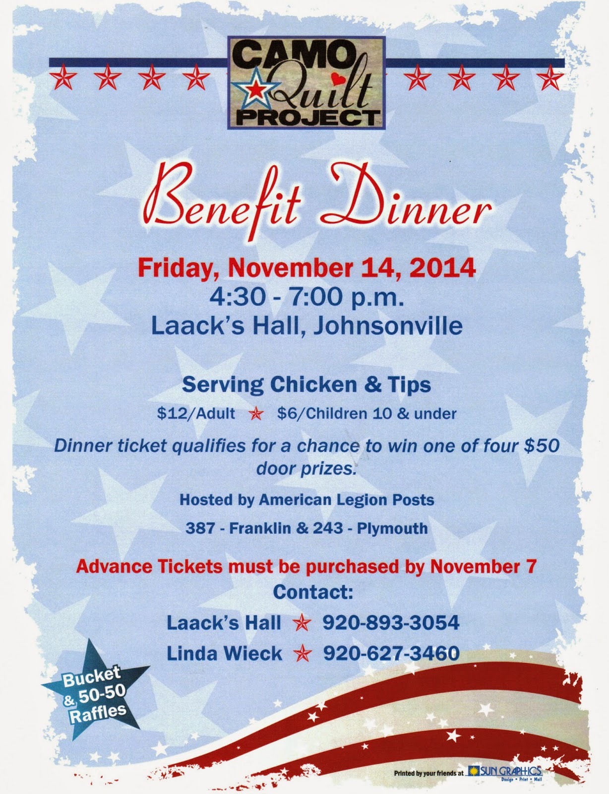 All proceeds from dinner sales will be given to the Camo Quilt Project!